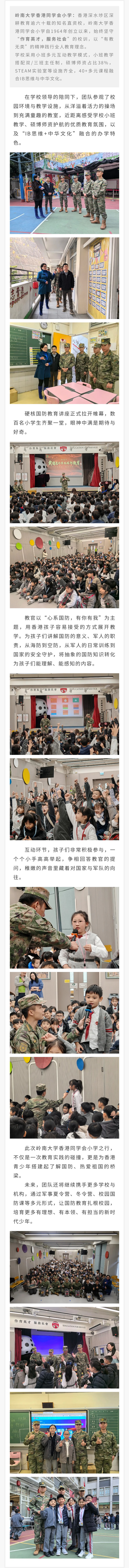 近日(2026年1月7号),黄埔迷彩军旅军事夏令营团队走进了岭南大学香港同学会小学,为深水埗区的孩子们带来了一场生动有趣的国防教育讲座。
